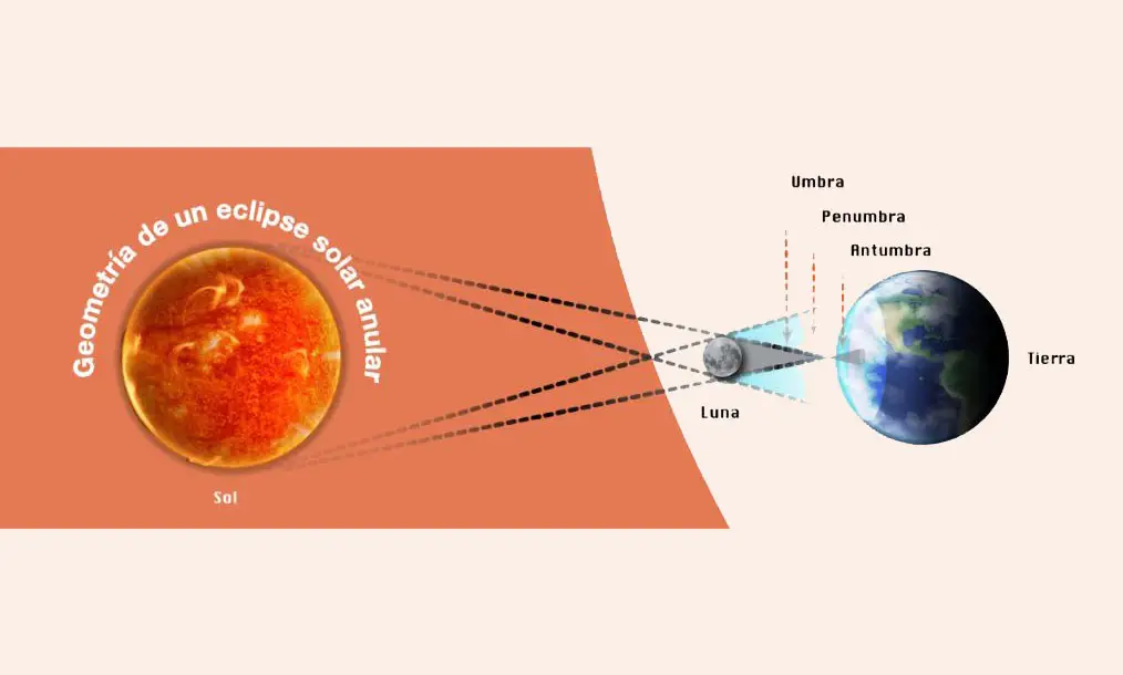 Un eclipse anular de Sol se produce cuando la Luna se alinea entre el Sol y la Tierra, pero en su punto más lejano desde la Tierra. “Como la Luna está más lejos de la Tierra, parece más pequeña y no bloquea la vista completa del Sol. Cuando la Luna esté frente al Sol, se ve como un disco oscuro encima de un disco brillante más grande. Esto crea lo que parece un anillo alrededor de la Luna”, explicó Carlos Paz Vivo! Julieta Barbeito, responsable del proyecto Cielito Lindo.