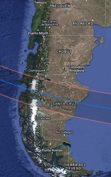 La denominada “franja de anularidad” (lugares donde se verá el eclipse de manera anular), pasará por la provincia de Santa Cruz. En el resto del país se verá de manera parcial.