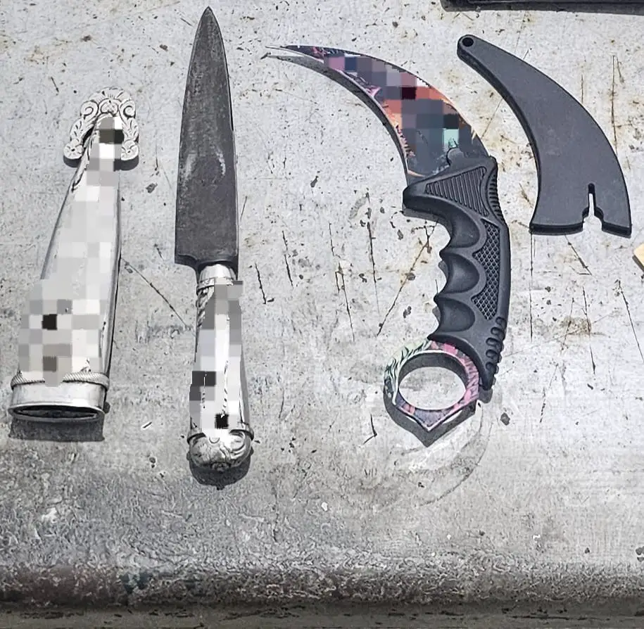 Según fuentes policiales, mientras agentes de la fuerza realizaban el patrullaje preventivo en el sector de las calles mencionadas, controlaron a dos hombres, quienes, al momento del control, exhibieron una navaja y un cuchillo estilo facón.