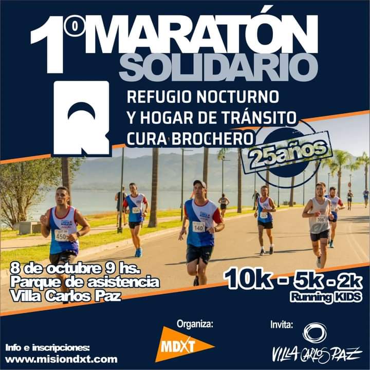 La maratón se correrá este domingo 8 de octubre desde el Parque de Asistencia, en la costanera de nuestra ciudad, y se realizará como conmemoración de los 25 años de vida del Refugio Nocturno y Hogar de Transito Cura Brochero.