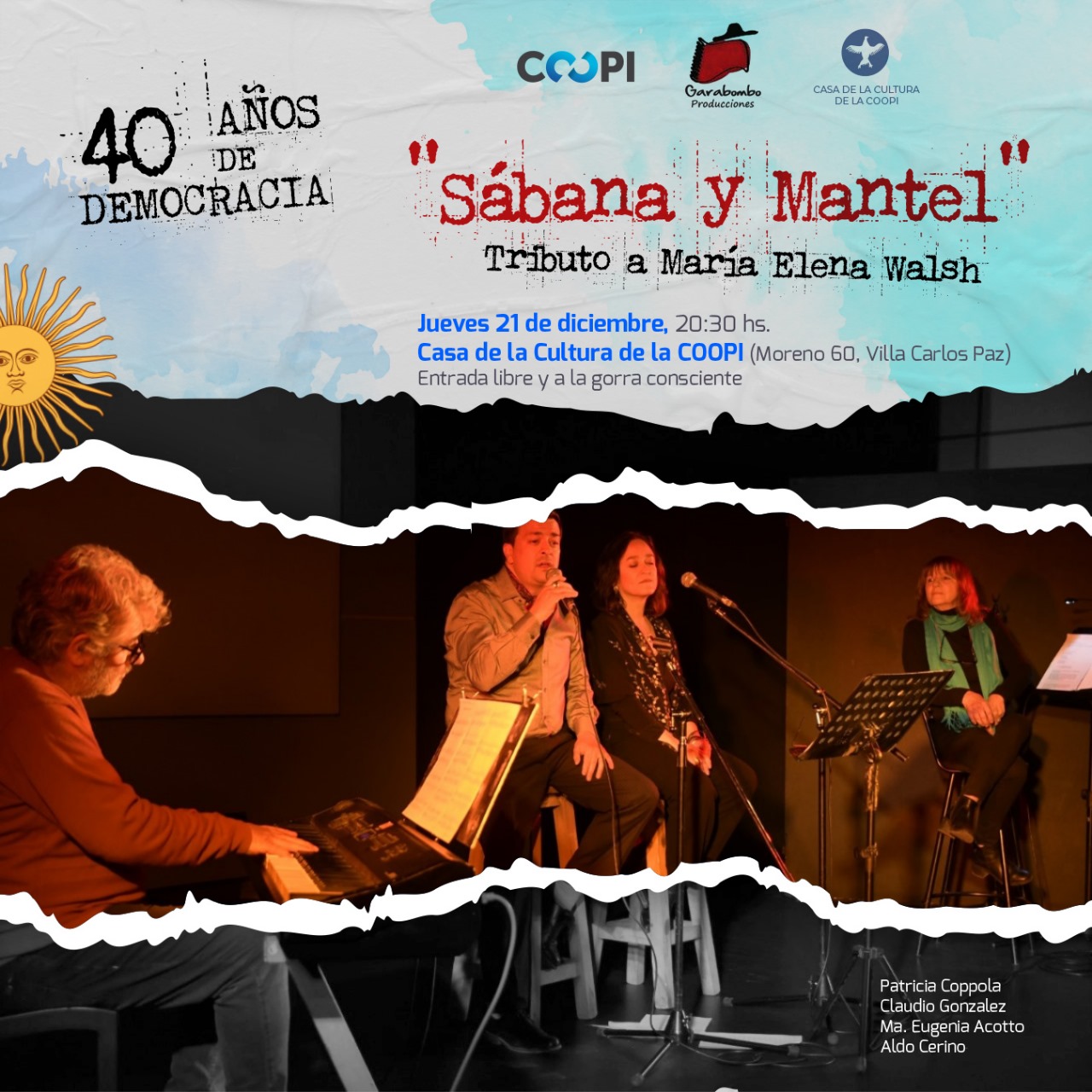 La cita es para este jueves 21 de diciembre, a las 20:30 horas en la Casa de la Cultura de la COOPI (Moreno 60, Villa Carlos Paz), con entrada libre y a la gorra consciente.