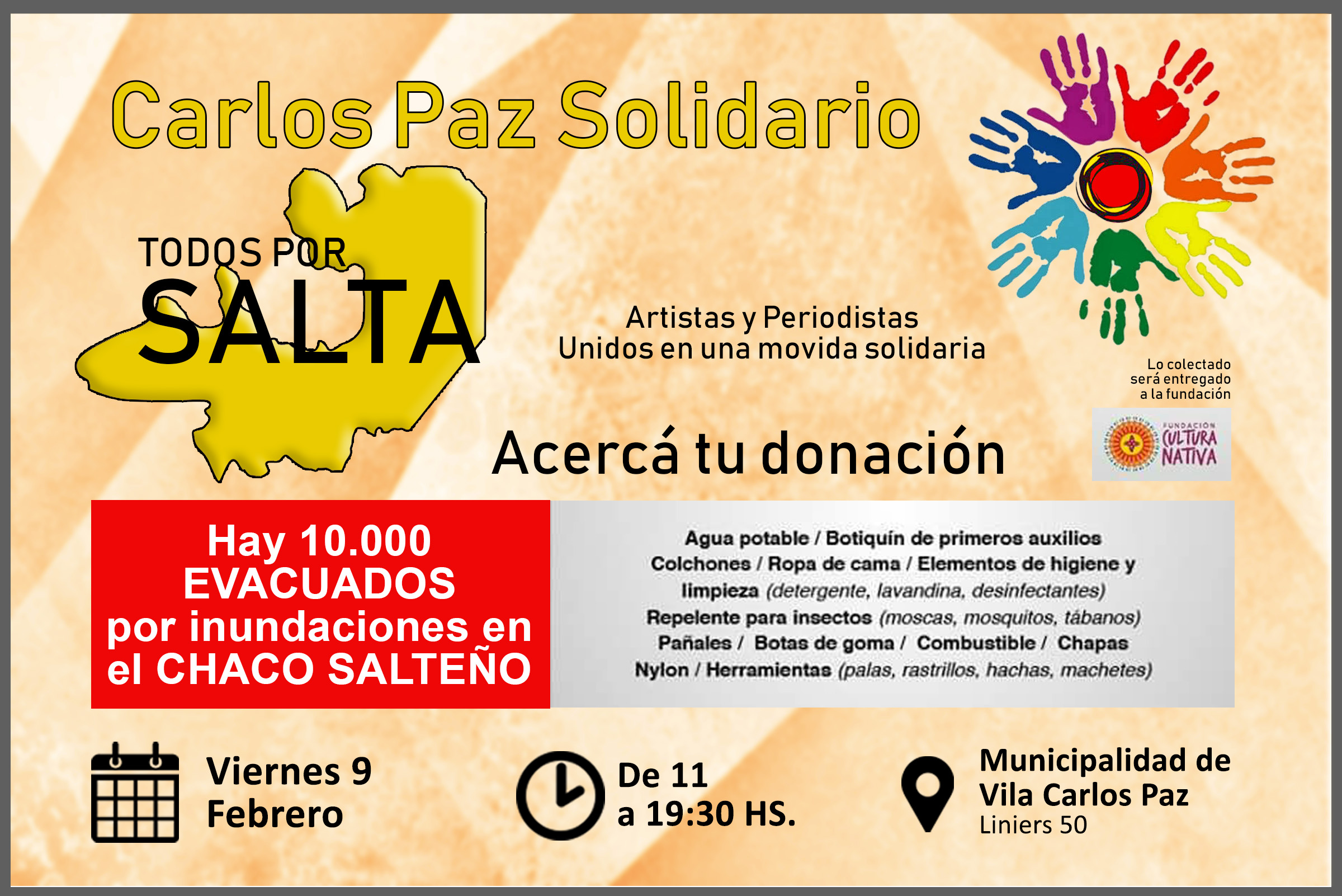 Este viernes de 11:00 a 19:00 hs, en la Municipalidad de Carlos Paz, artistas y famosos que hacen temporada en Carlos Paz, junto con los medios que cubren temporada estarán colaborando en una colecta solidaria.