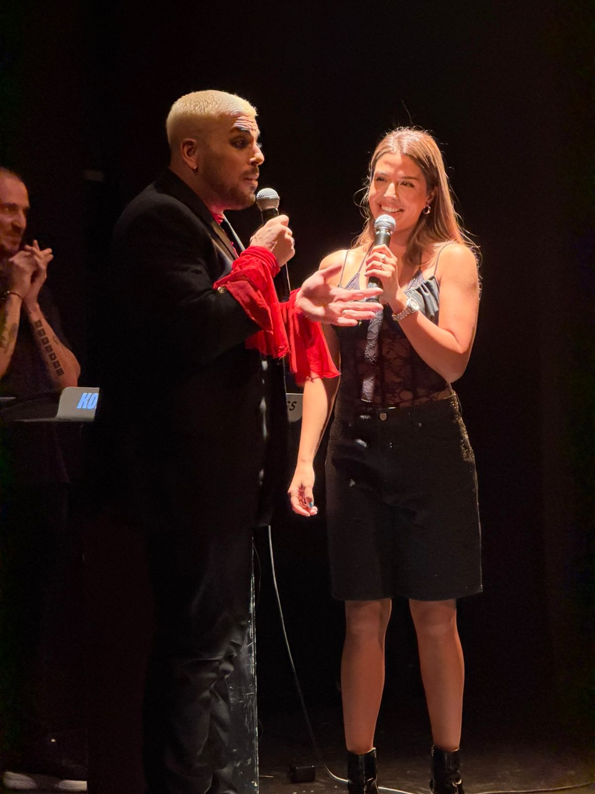 La función de “Camaleón Rojo” de este lunes no fue una más; fue una de esas noches que quedan grabadas en la retina del público. La gran sorpresa de la velada llegó de la mano de Eugenia Quevedo, quien visitó a su gran amigo Facu Mazzei en una noche cargada de talento y complicidad.