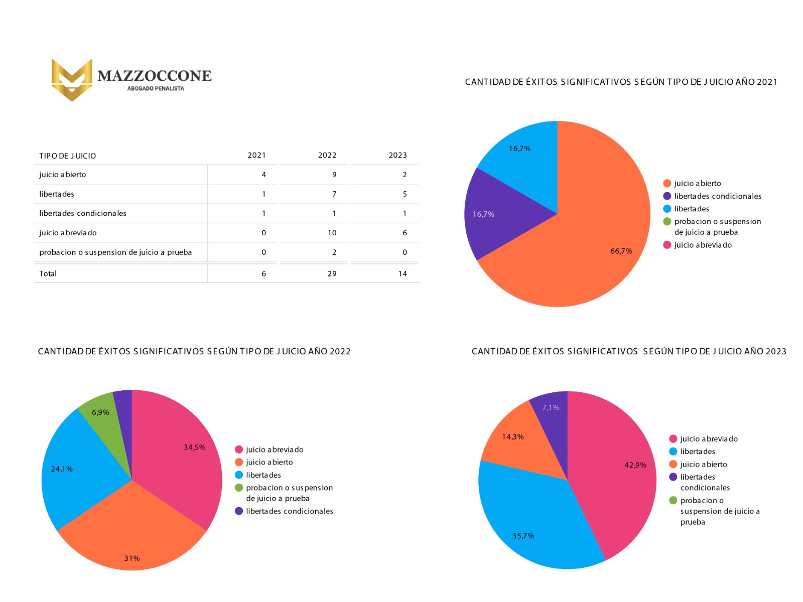 Estos logros sobresalientes resaltan el compromiso y la maestría del equipo legal del estudio Mazzoccone en la exitosa representación de sus clientes en una amplia variedad de contextos judiciales y casos. Su habilidad para obtener resultados positivos en diversas dependencias judiciales y tipos de juicios es un testimonio de su dedicación y experiencia en el campo del derecho penal.