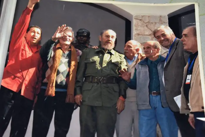 Ariel Vidosa en la casa del Che flanqueado por Chávez y Fidel