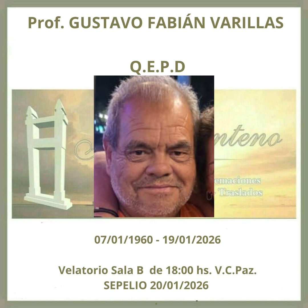 Los restos de Gustavo Varillas serán velados este lunes 19 de enero, a partir de las 18 horas, en la Sala B de Julio Centeno, en Villa Carlos Paz.
