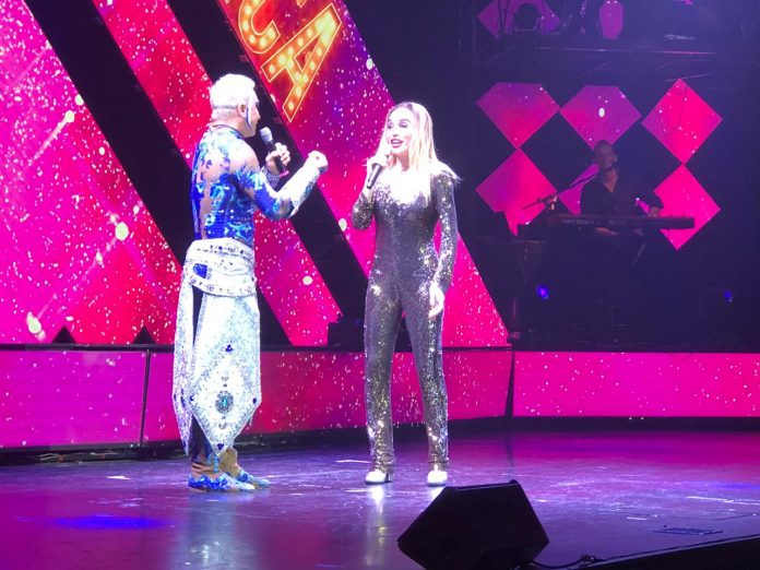 Luego de una semana que los tuvo con declaraciones cruzadas, Flvio Mendoza fue a visitar a Fátima Florez y saludarla por su cumpleaños en pleno escenario del teatro Holiday.