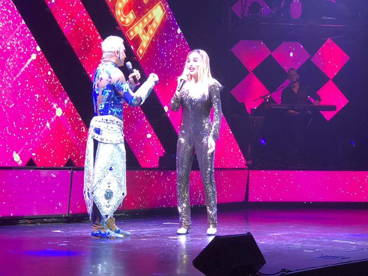 Así con chicanas, se desarrollaron los minutos que Mendoza estuvo sobre el escenario. Pero culminaron con un abrazo y el canto de la gente por el cumpleaños de la humorista.