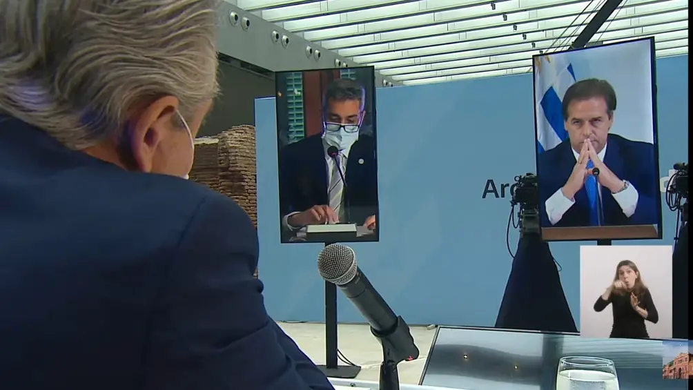 También hicieron uso de la palabra los presidentes de Paraguay y de Chile y Bolivia, pero Fernández cerró el encuentro con palabras que aludieron al discurso de Lacalle Pou.