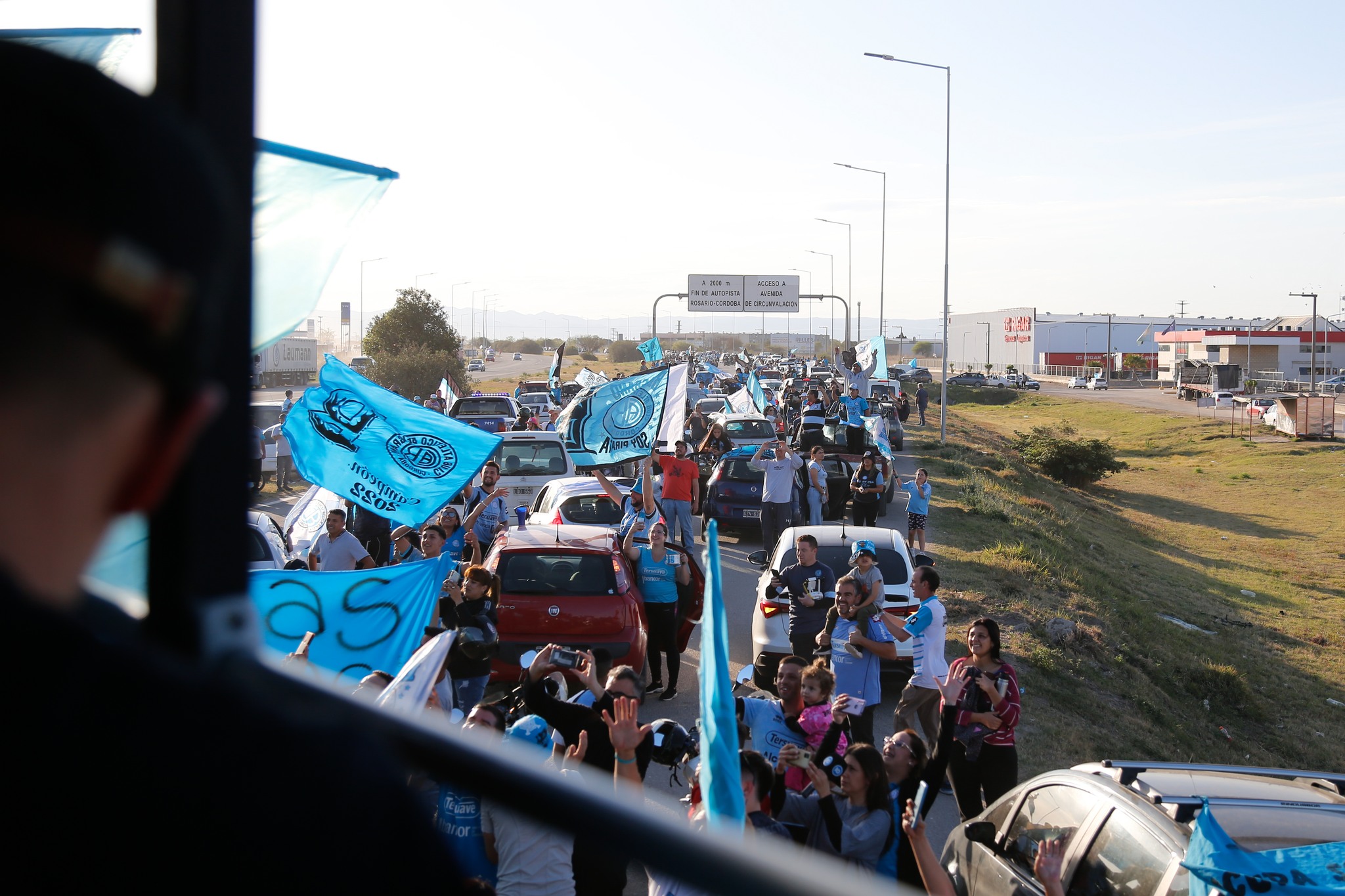 Una larga caravana dio la vuelta olímpica más larga del mundo al rodear la ciudad de Córdoba por la avenida Circunvalación Agustín Tosco.