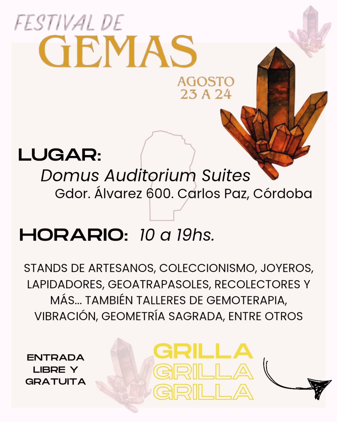 El 23 y 24 de agosto, el Domus Auditorium Suites de Villa Carlos Paz (Gobernador Álvarez 600) será el epicentro del Festival de Gemas, una cita imperdible para los amantes de la mineralogía, la gemoterapia y la artesanía vinculada al mundo mineral.