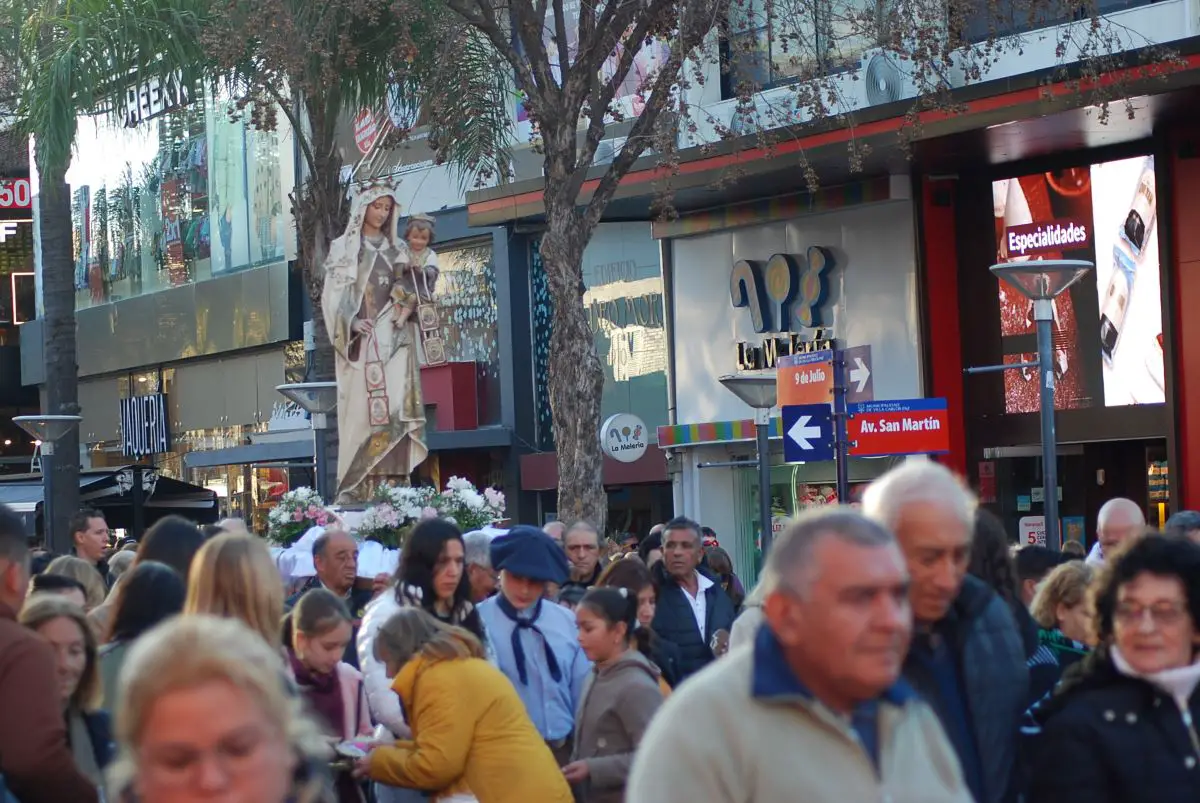 La imagen de Nuestra Señora del Carmen recorrió las calles del centro de la ciudad y fue saludada por los vecinos y turistas que paseaban por el lugar.