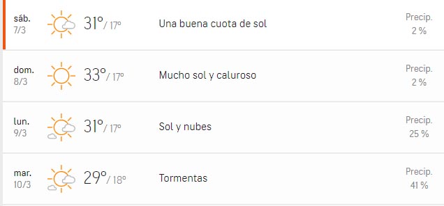 El viento desde el sector norte colaborará con la temperatura elevada con mínimas en los horarios nocturnos que, en ambos días, serán muy cercanas a los 20 grados.