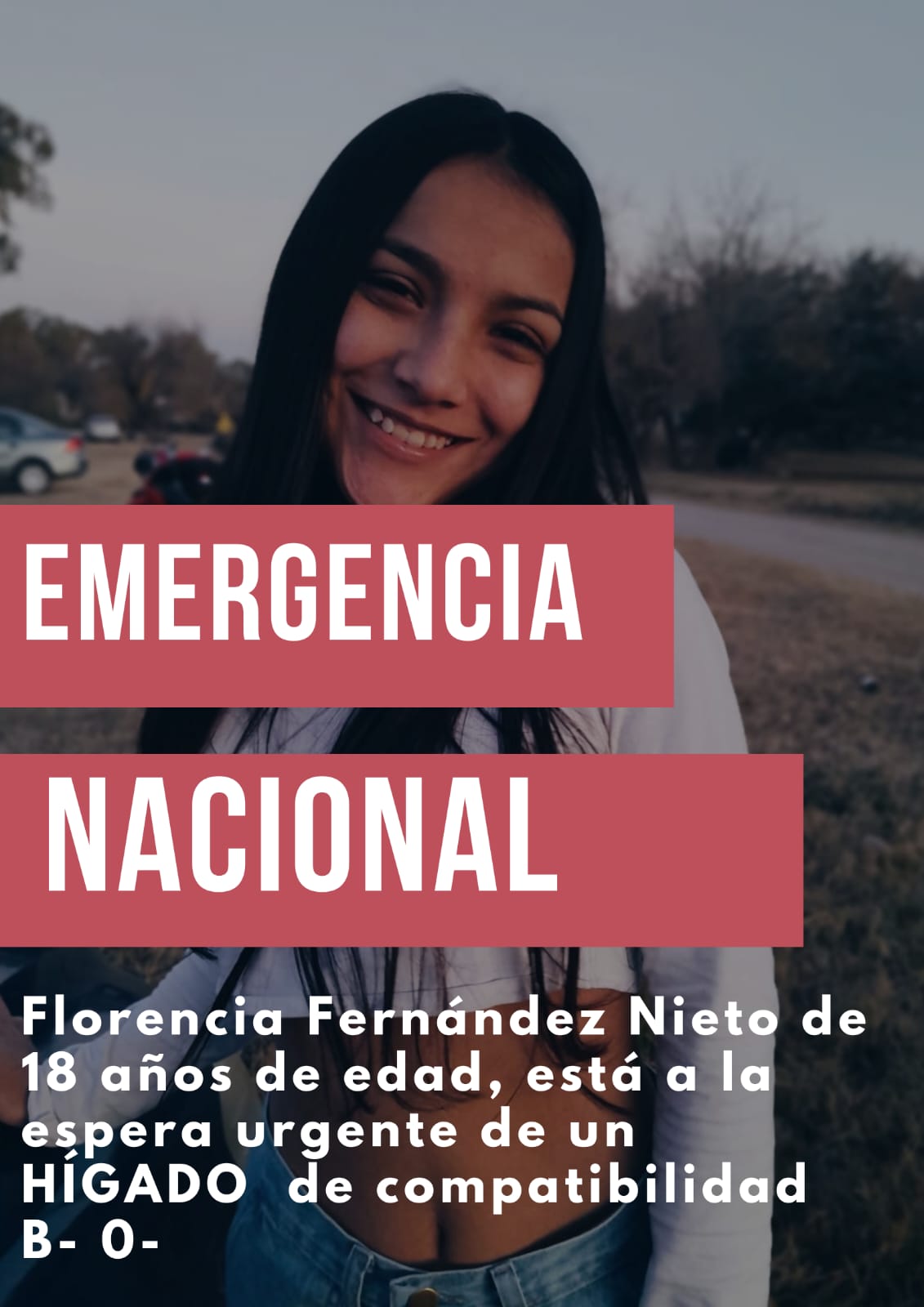 Florencia Fernández Nieto es una joven de 18 años, oriunda de Cruz del Eje, que actualmente se encuentra en estado crítico de salud y espera con urgencia un trasplante de hígado para poder sobrevivir.