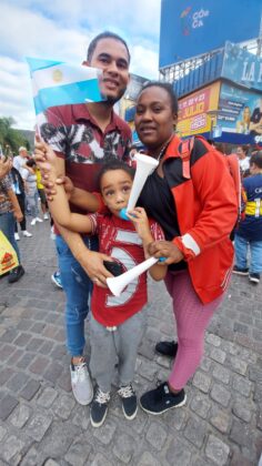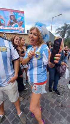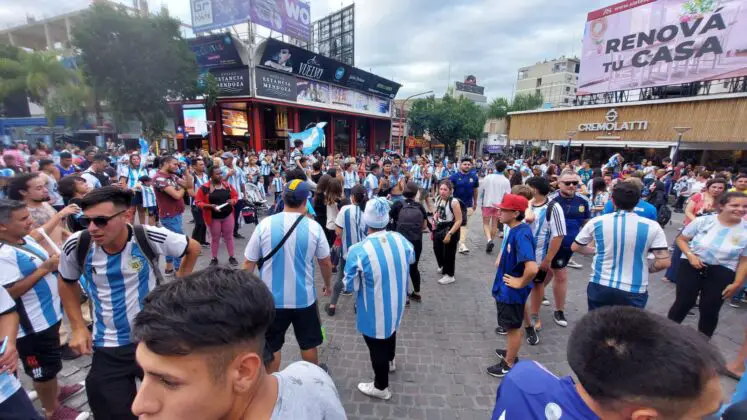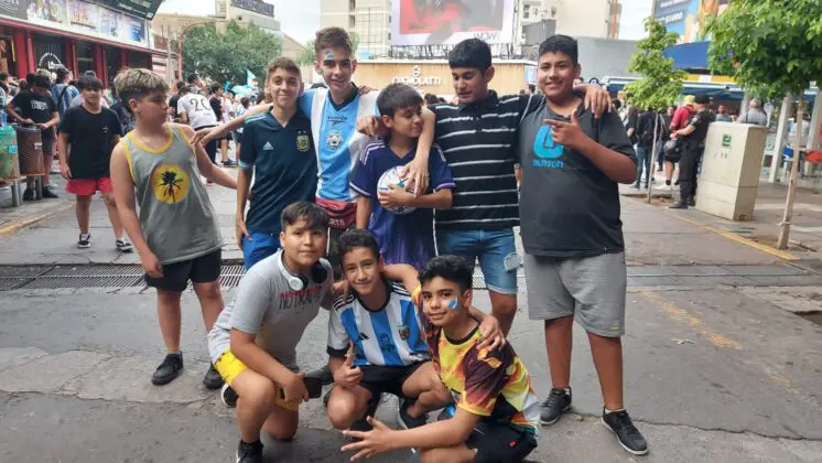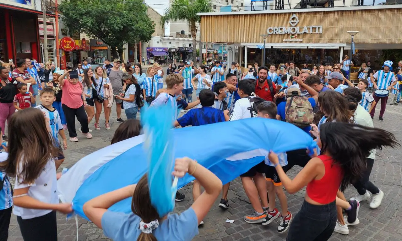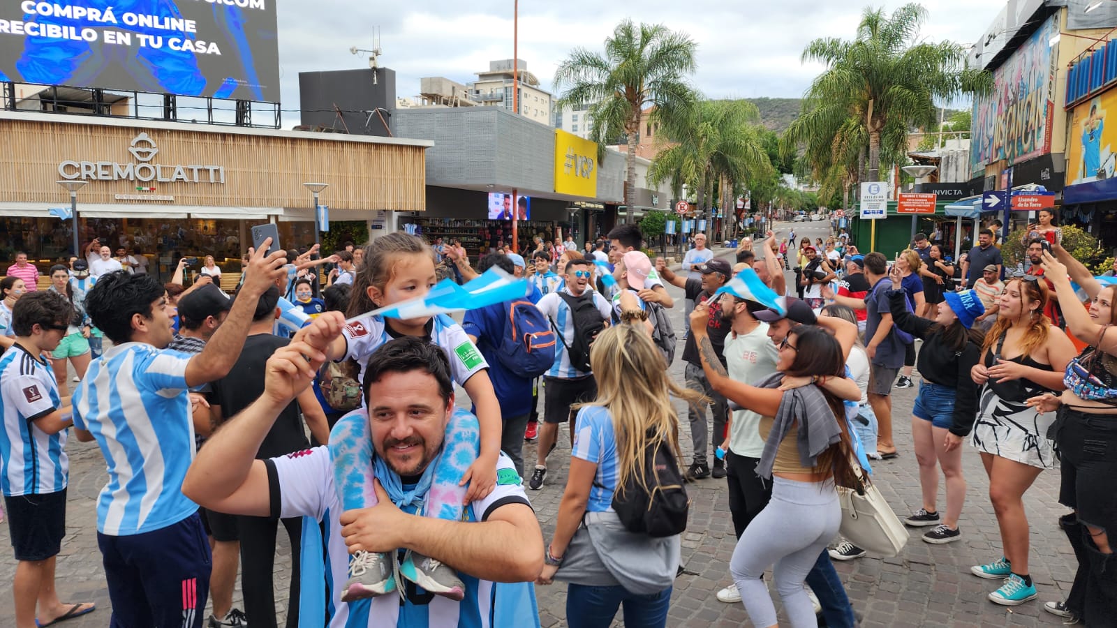 A minutos de finalizado el partido decisivo, el centro de la villa se fue llenando de gente que se acercaba a festejar en familia el triunfo argentino.