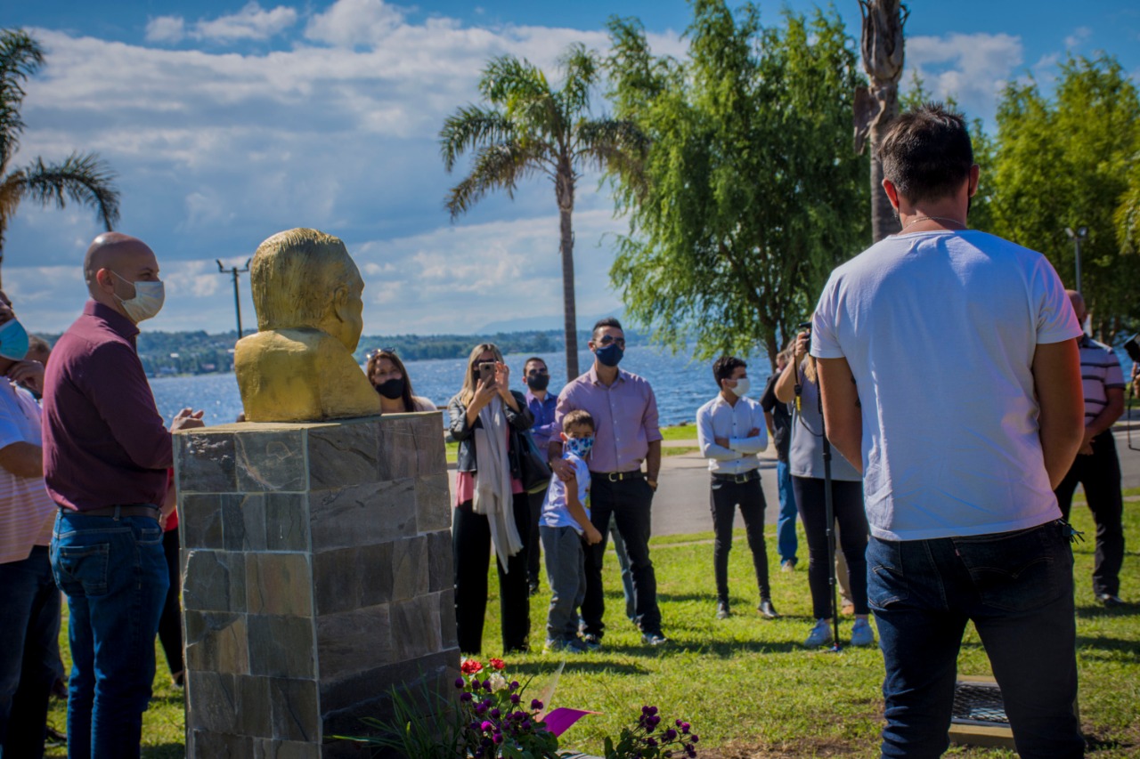 El intendente Daniel Gómez Gesteira, el exintendente Esteban Avilés y el flamante presidente del Comité local de la UCR, Juan Lucero, participaron este miércoles de un pequeño acto que se realizó en el busto del expresidente Raúl Alfonsín al cumplirse el 12° aniversario de su muerte.