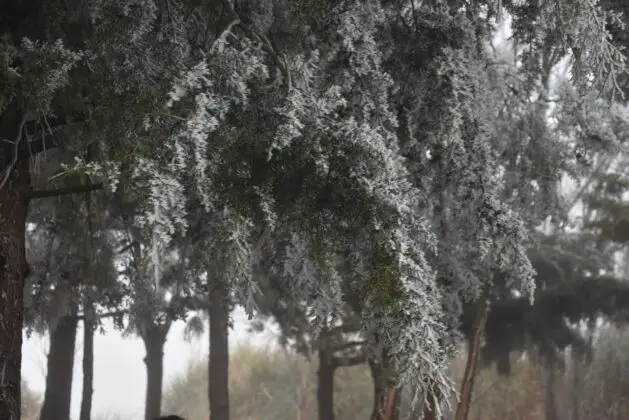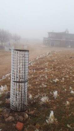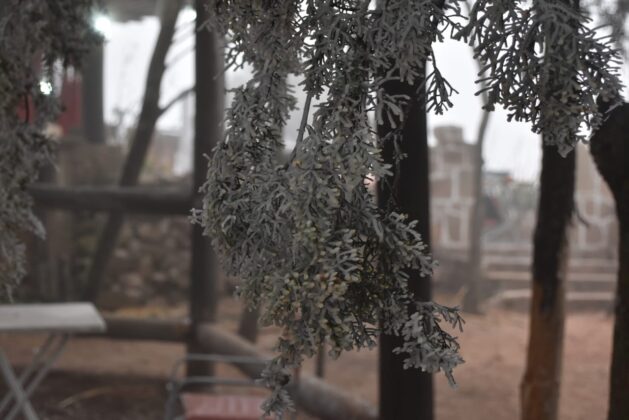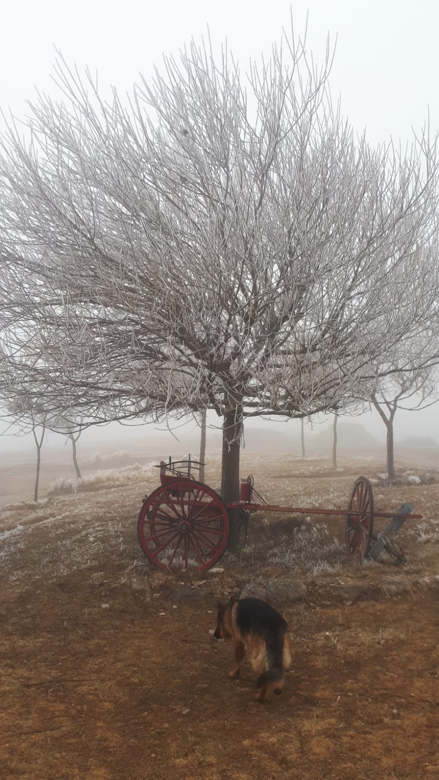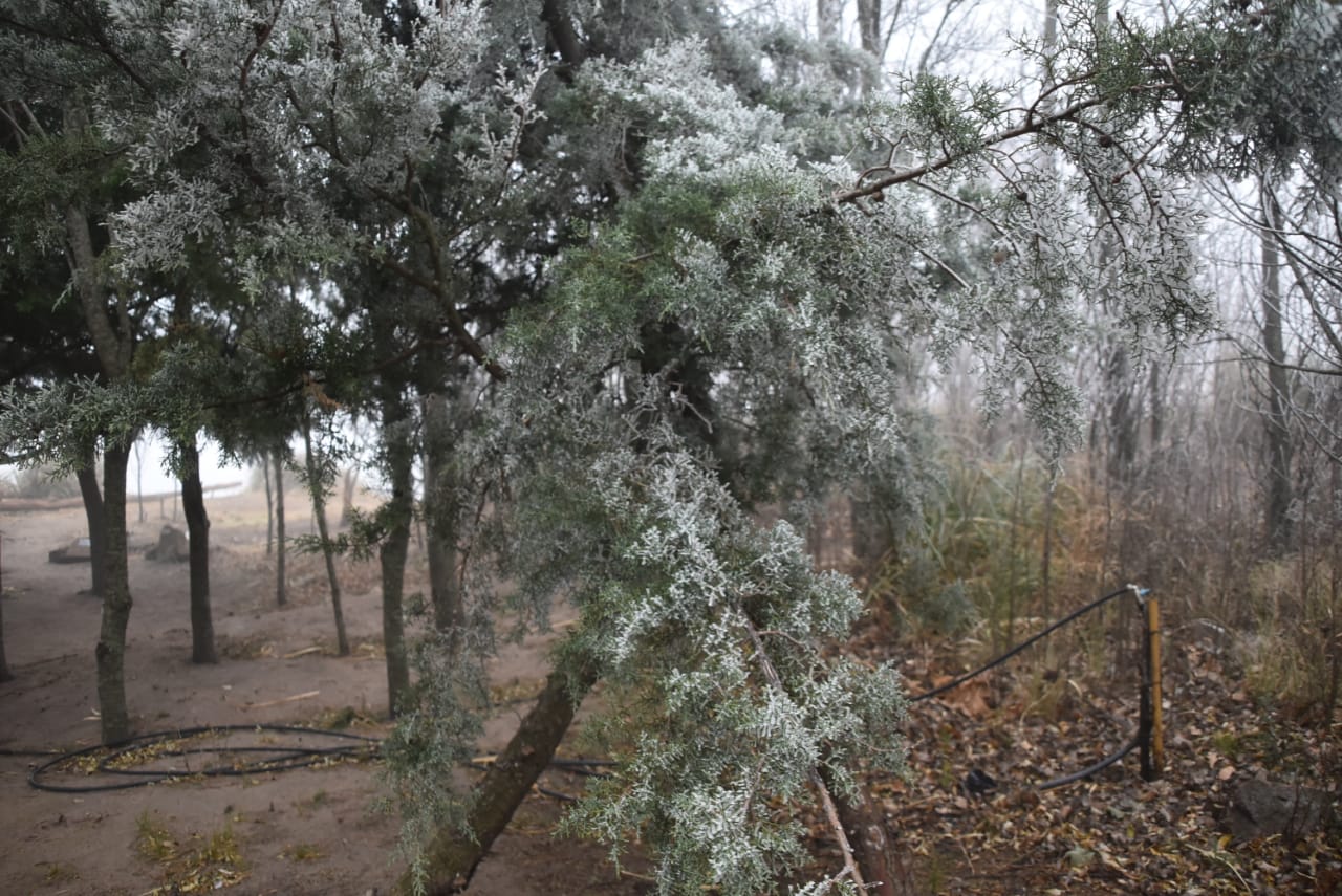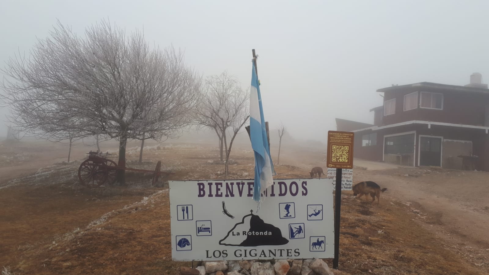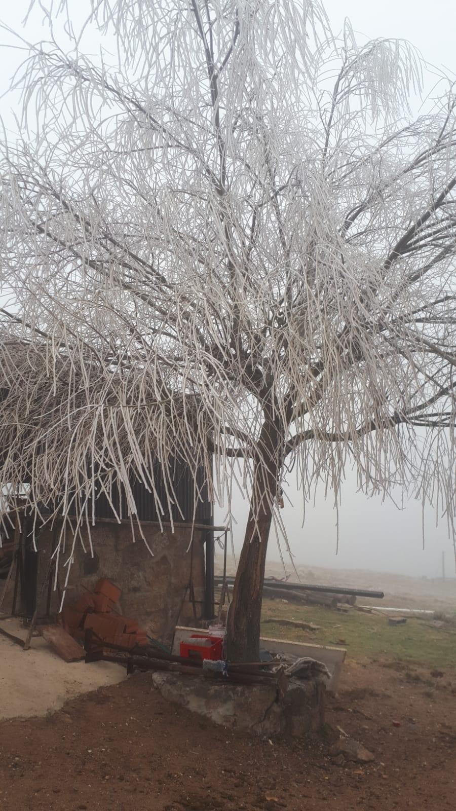 Desde Los Gigantes (La rotonda) Sandra Pedernera reportó: “Está todo congelado, hasta el molino. No se ven Los Gigantes por la niebla. Nieve por el momento no cayó porque para eso se tiene que templar y está muy frío”.