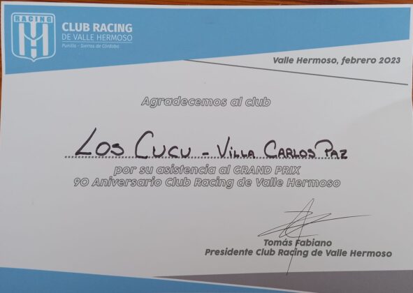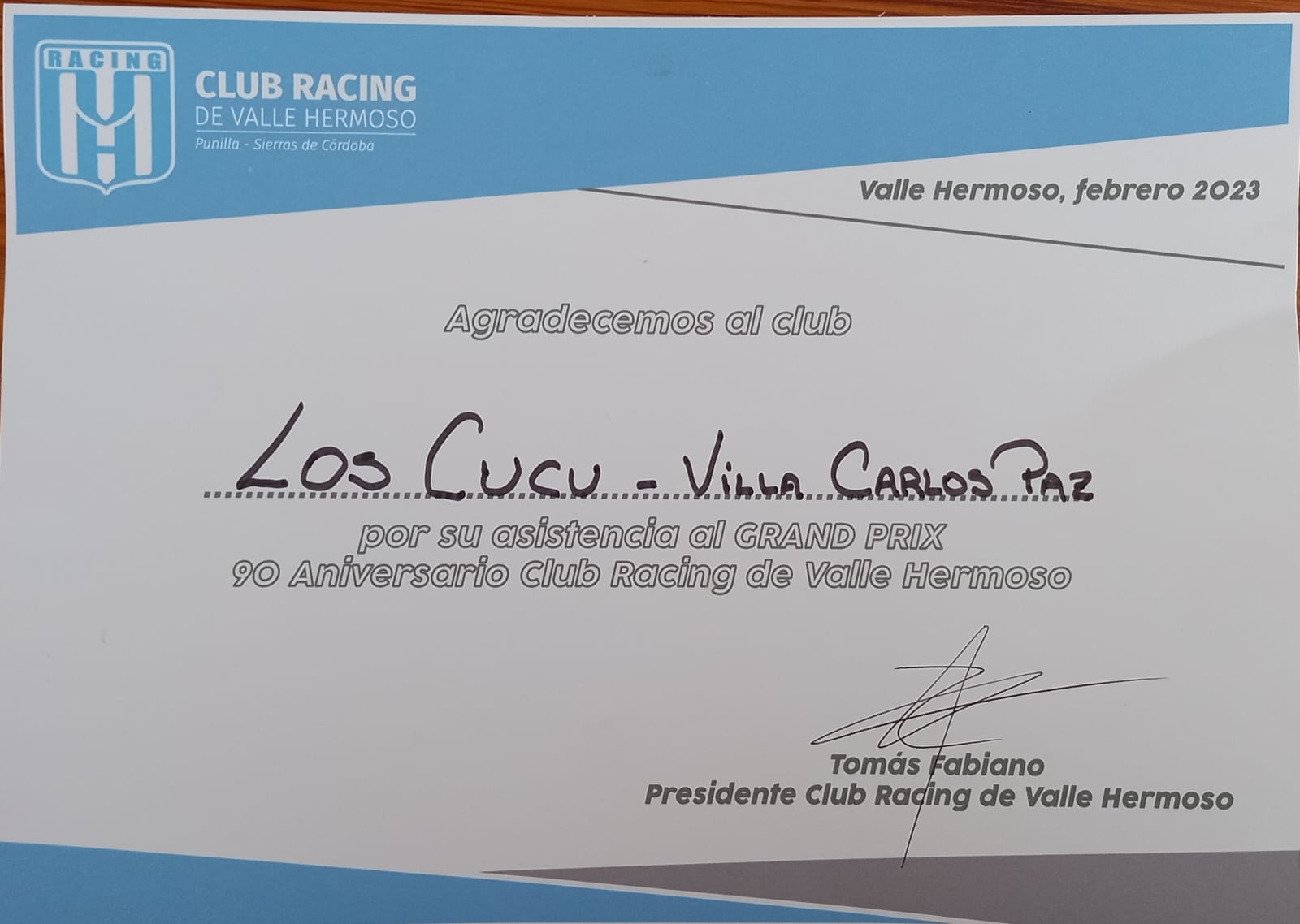 En el marco de un nuevo aniversario del club Racing, la localidad de Valle Hermoso fue sede de un importante Gran Prix de Newcom. El evento contó con la participación de equipos de Córdoba, de Gral. Bustos y de Avellaneda, además de los locales y los Cucú, quienes terminaron la jornada como campeones.