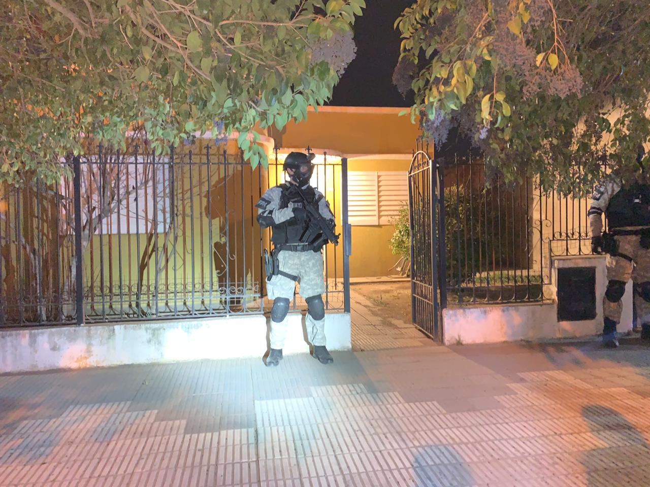 Uno de los investigados fue aprehendido en la vía pública, en Avenida Ctalamochita esquina Amafuerte. Inmediatamente se desplegaron tres irrupciones en distintos inmuebles ubicados en las calles L. Capandegui al 300, Isabel La Católica y el restante en Derqui, barrio Cerino.