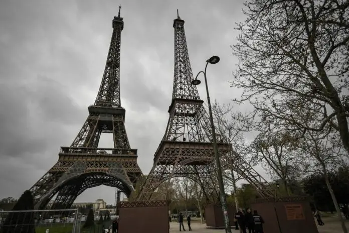 La copia de la torre Eiffel permanecerá en exhibición junto al modelo original hasta el 10 de abril, según el diario Le Parisien.