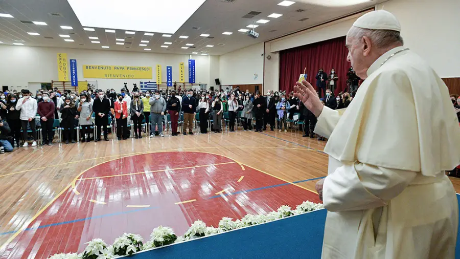 “No vales por la marca de la ropa o por el calzado que llevas, sino porque eres único, eres única”, les dijo Jorge Bergoglio durante la reunión en la escuela San Dionisio, de las monjas ursulinas del país helénico.