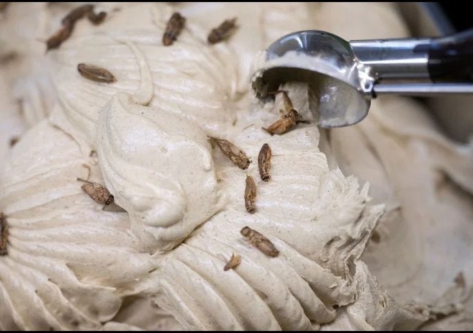La base de este exótico sabor es una espesa crema, elaborada con harina de grillos, extracto de miel y vainilla mezclada con grillos enteros.