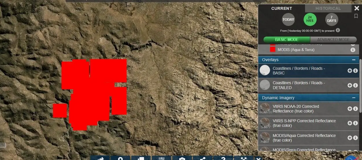 De hecho, se advierte que el fuego avanza rápido ya que, según los mapas del fuego publicados por FIRM, la herramienta de la NASA para monitorear incendios, ya son más de 400 hectáreas las quemadas en las últimas 24 horas en ese sector.