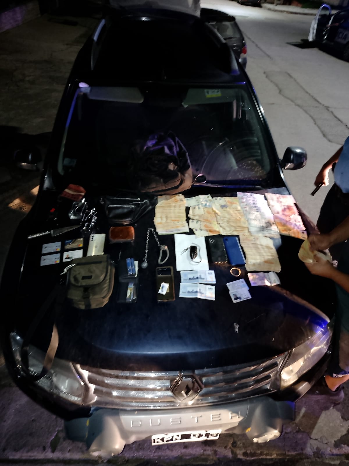 El operativo se realizó en la intersección de calles Corrientes y Mosconi, donde los sospechosos fueron interceptados a bordo de un Renault Duster. En el interior del vehículo, la Policía secuestró un inhibidor de señal tipo “Pandora”, un chicote para romper ventanillas de vidrio, cuatro teléfonos celulares, más de 600 mil pesos en efectivo, prendas de vestir y otros elementos que habrían sido sustraídos en la zona.