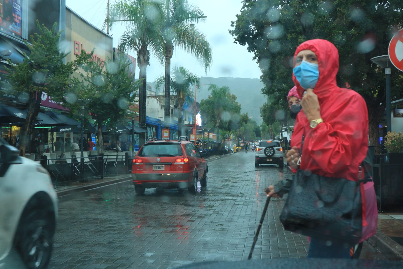 Un fuerte chaparrón cayó sobre Carlos Paz pasado este mediodía provocando que algunas calles se annegaran en el centro y en barrios de la ciudad.