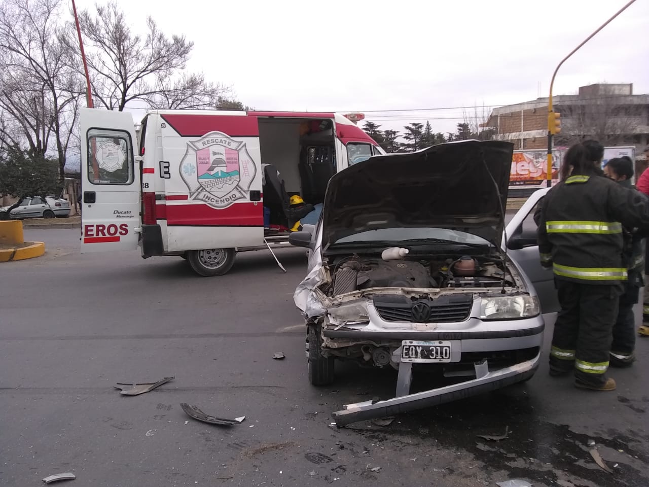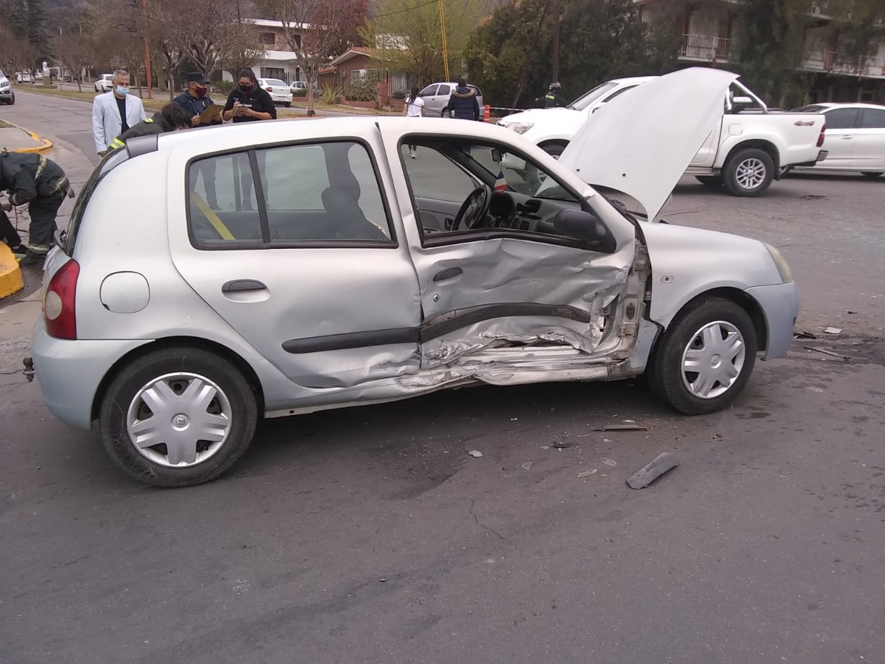 A la altura de calle Gabriela Mistral y su intersección con dicha arteria de ingreso a Villa Carlos Paz, un Volkswagen Gol gris y un Renault Clio del mismo color, colisionaron y sus ocupantes tuvieron que ser asistidos por Bomberos Voluntarios.