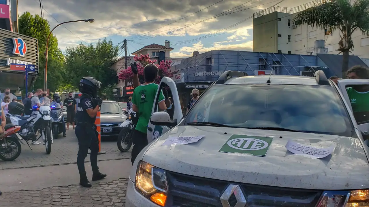 En el centro, se produjo una fuerte discusión entre los líderes de ATE y los agentes de Seguridad VCP y la Policía, que si bien no pasó a mayores, provocó que la caravana se detenga e interrumpa totalmente el tránsito durante varios minutos en la esquina de 9 de Julio y Montevideo.