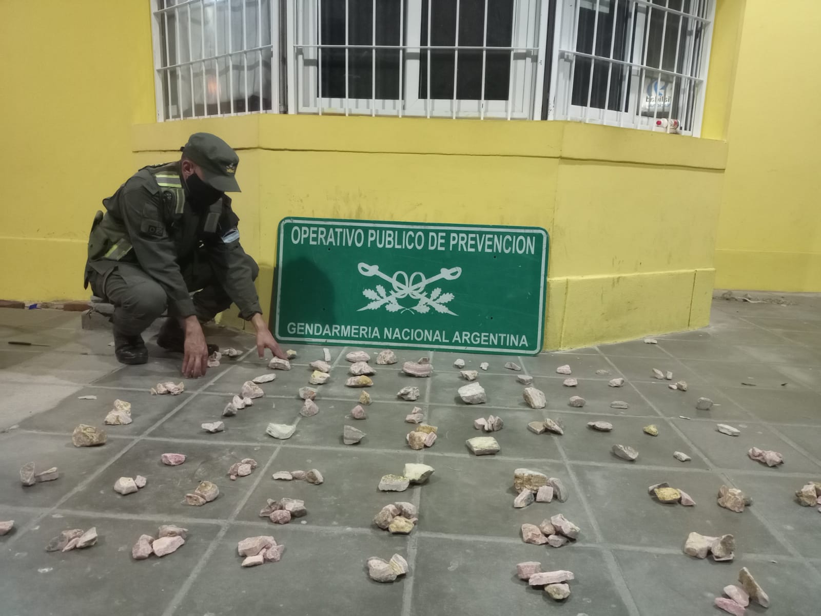 Durante la requisa, los funcionarios observaron en el semirremolque la presencia de varias cajas con un peso poco habitual para las dimensiones. Ante esta situación en presencia de testigos se dio apertura y se hallaron piedras semipreciosas (rodocrosita).
