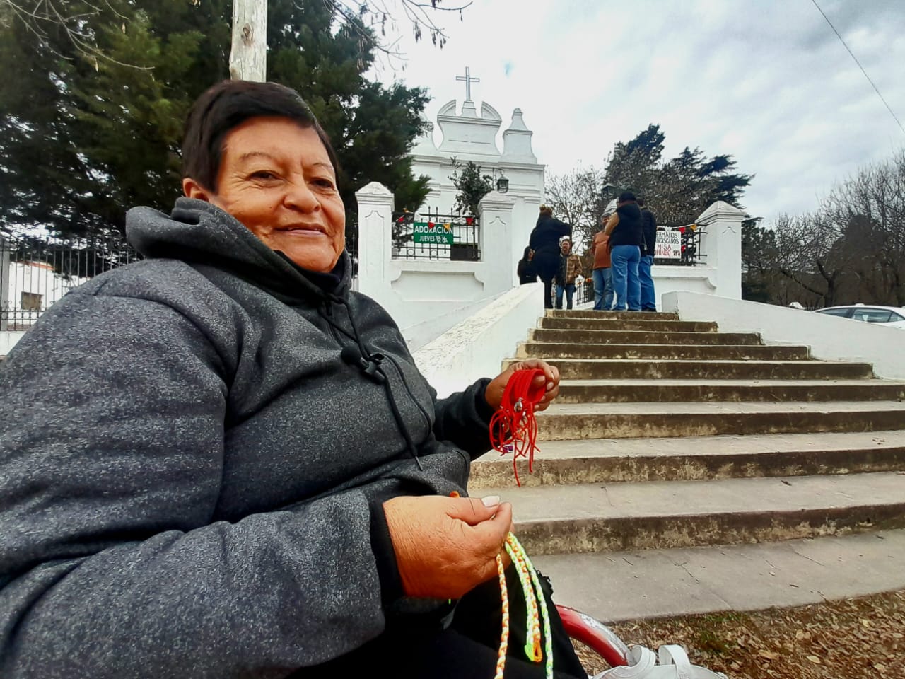 La mujer, de 70 años, teje y arma pulseras para venden en las iglesias y recorre algunas de las fiestas patronales de la zona para ofrecer sus productos.