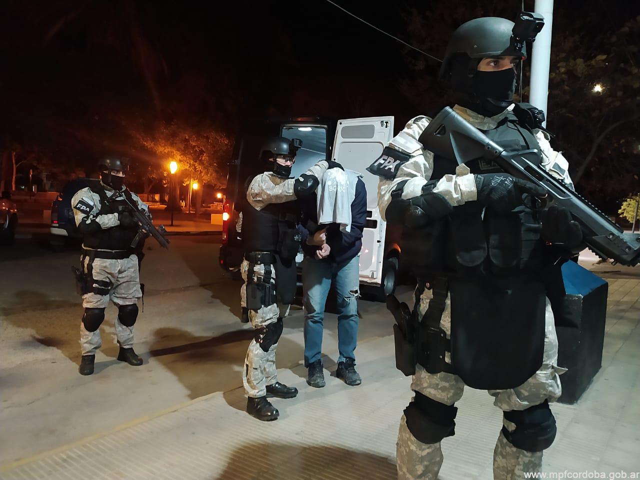 Las irrupciones se realizaron en inmuebles de las calles Leandro Alem, Battle Planas, Rubén Darío, Pampa, San Luis y Camino Público a San Marcos. Contó con colaboración de Policía de la Provincia en la seguridad del anillo exterior a las mismas.