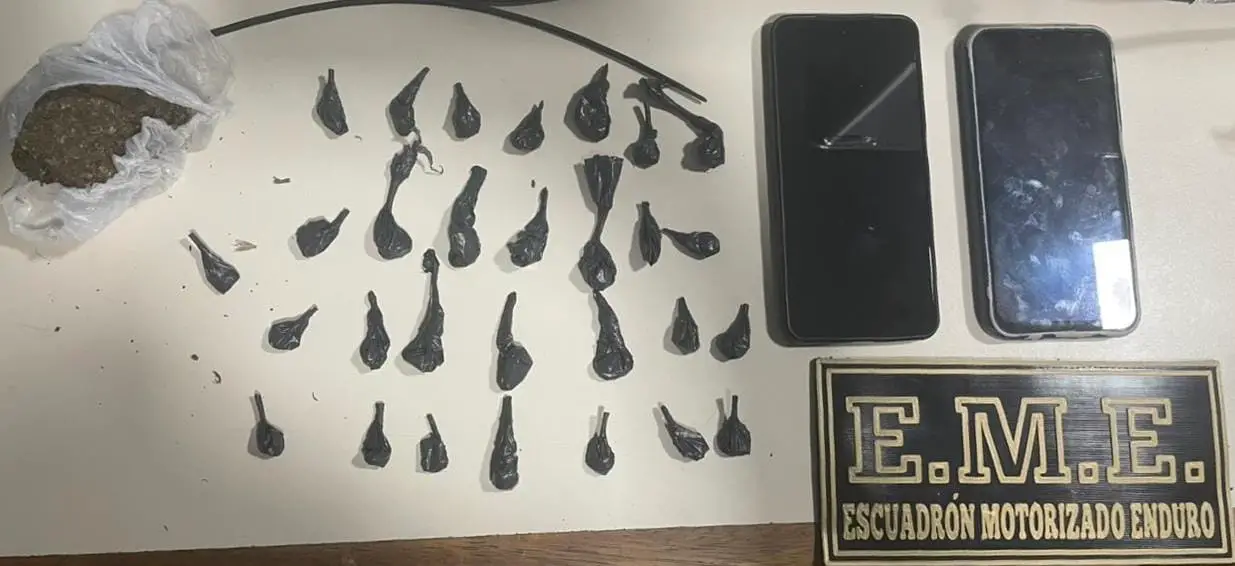 Ante la sospecha de estar frente a un caso de narcotráfico, se solicitó de inmediato la colaboración de la Fuerza Policial Antinarcotráfico (FPA). Los peritos de la fuerza especializada confirmaron el hallazgo de: 46 gramos de marihuana (distribuidos en dos trozos compactados), 17 gramos de cocaína (fraccionados en 21 envoltorios listos para la venta). y dos teléfonos celulares.