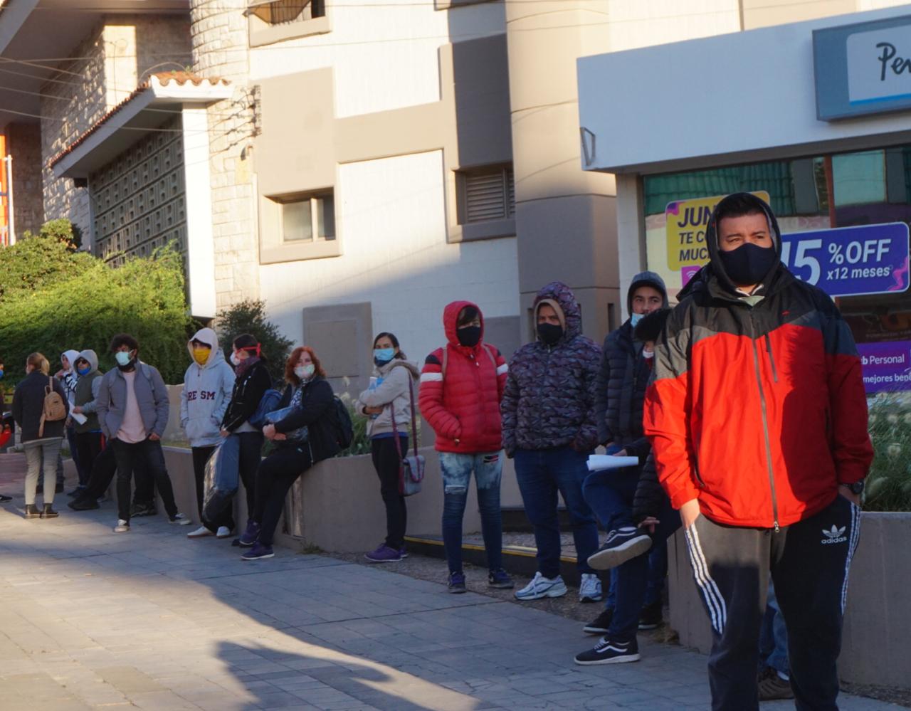 Por momentos, la cola llegó a dar la vuelta a la manzana y la policía asignada al lugar intentaba hacer respetar la distancia social.