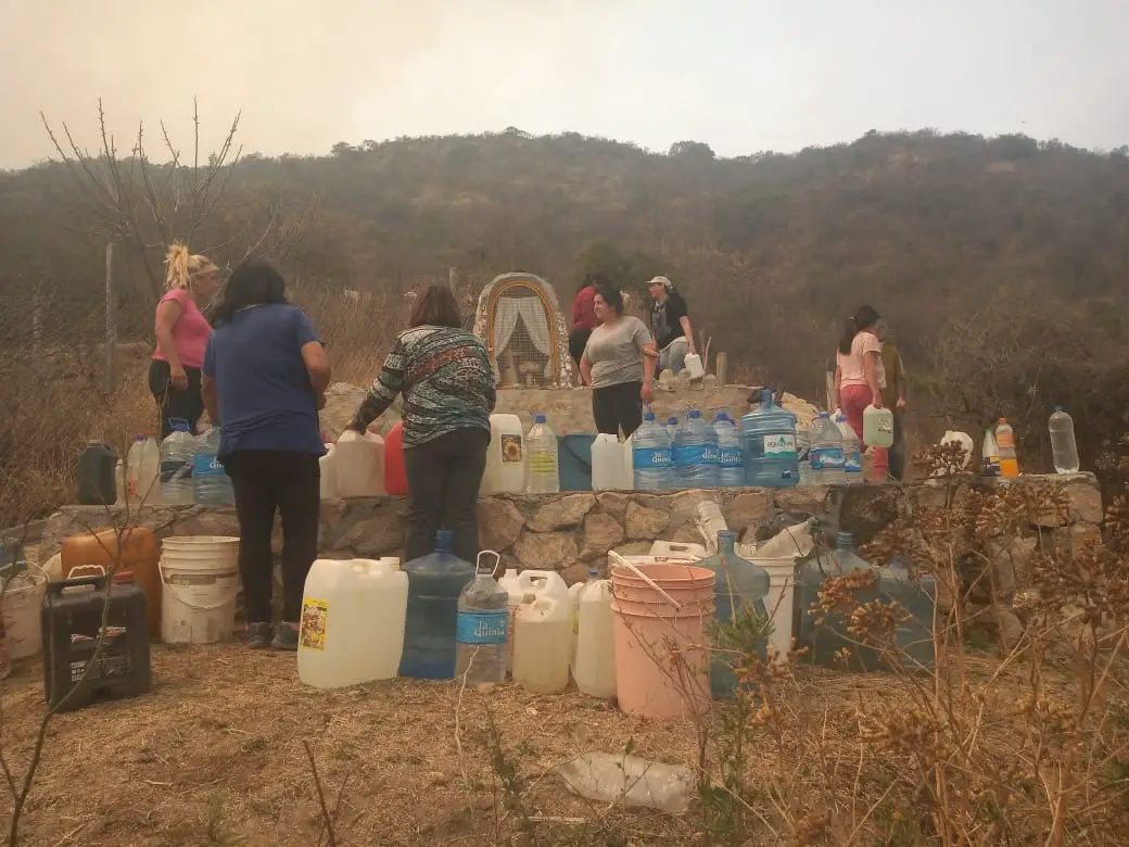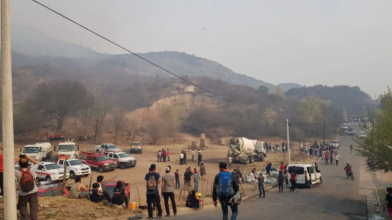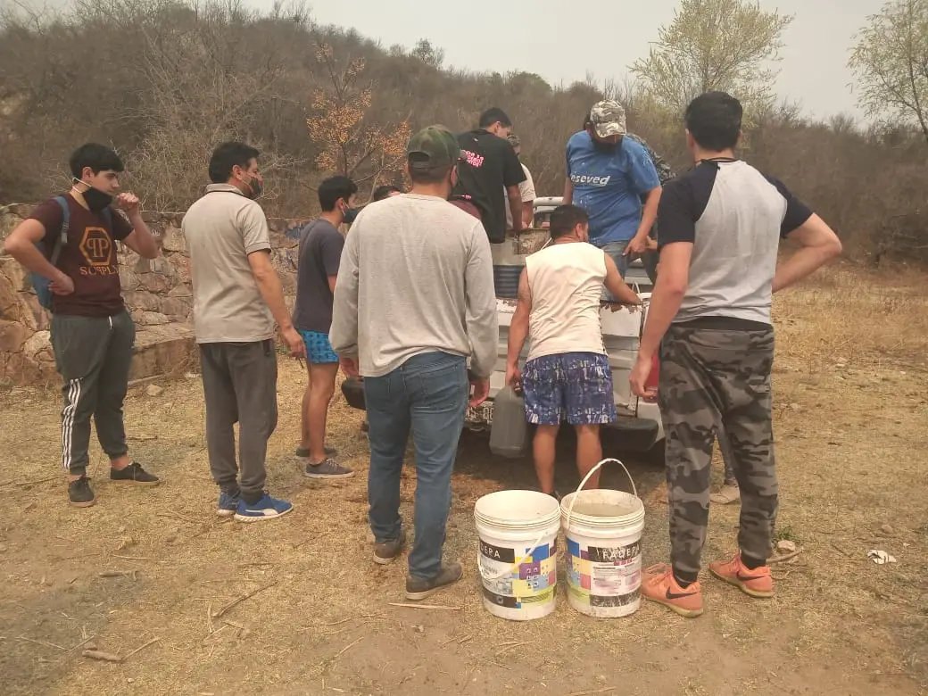 Personas de todas las edades llegan de diferentes barrios de la ciudad para sumarse al duro trabajo. ¿. Algunos llegan con bidones, otros con vehículos cargados de recipientes con agua, y todos buscan subir por los senderos para adentrarse al corazón de la ladera y combatir el incendio.