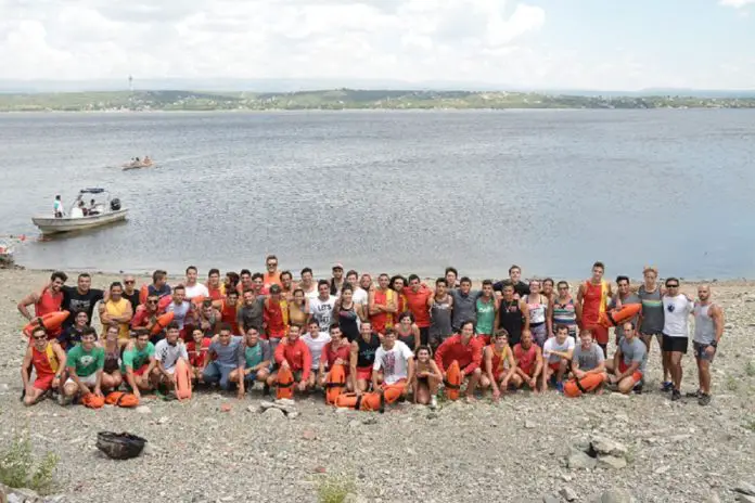El sábado llegó el momento más importante del curso de Guardavidas que todos los años se hace en la ciudad: el cruce a nado del lago San Roque, un bautismo para los egresados.