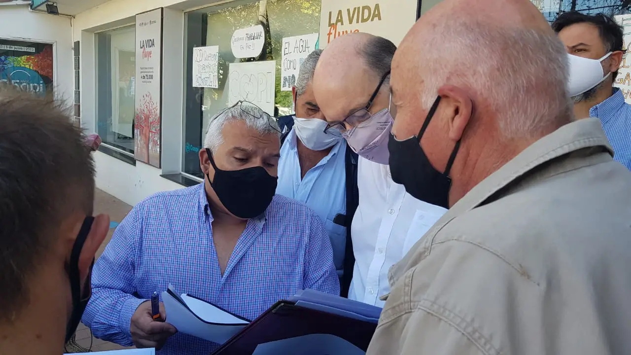 El asesor letrado del municipio, Darío Pérez, estuvo acompañado por el secretario de Desarrollo Urbano, Gustavo García Setti y el flamante secretario de Agua y Saneamiento, Roberto Cotti, quien fue el blanco de los cánticos de los trabajadores de la Coopi por haber sido directivo de la entidad.