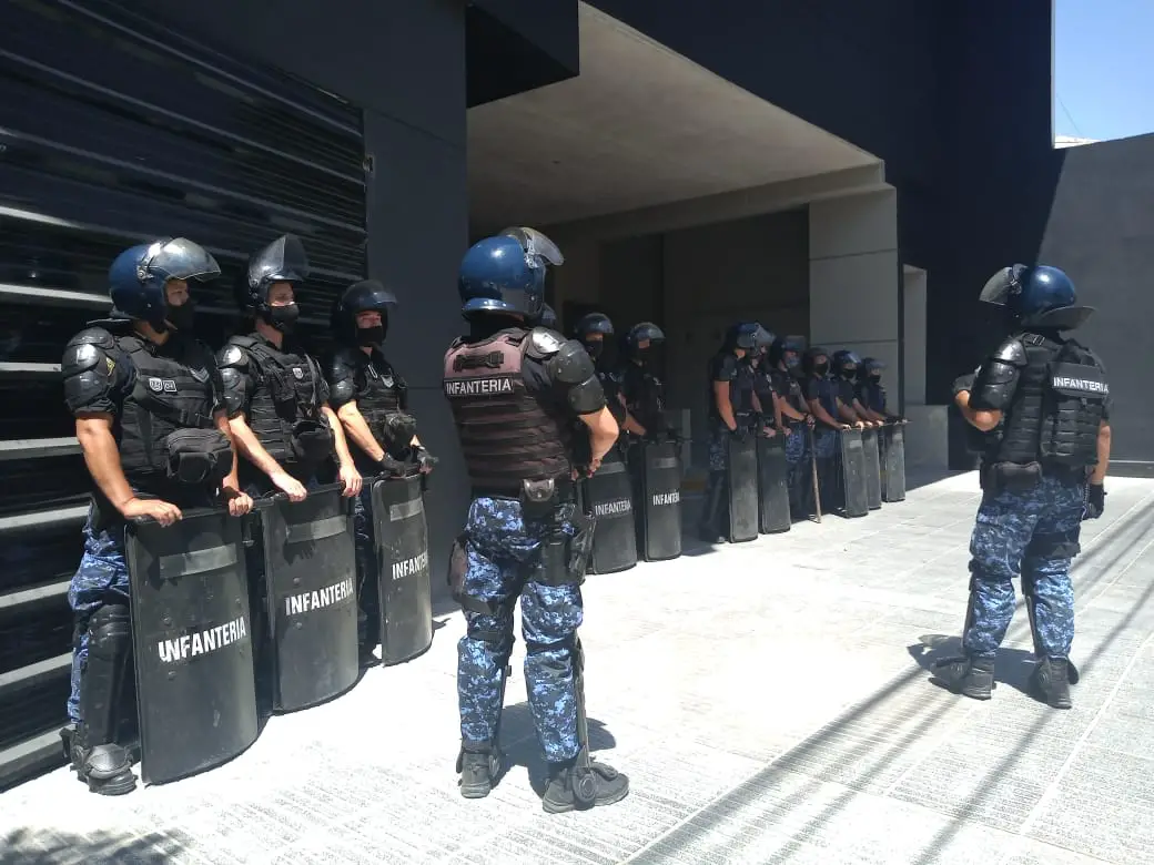 Una comitiva policial arribó hace minutos al edificio de la Cooperativa Integral con la orden judicial firmada por el fiscal Ricardo Mazzuchi para que se permita el ingreso a la sede de calle Moreno de los funcionarios municipales para la fiscalización de bienes del servicio de agua.