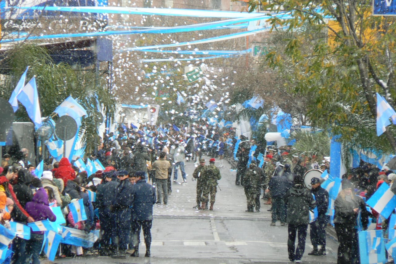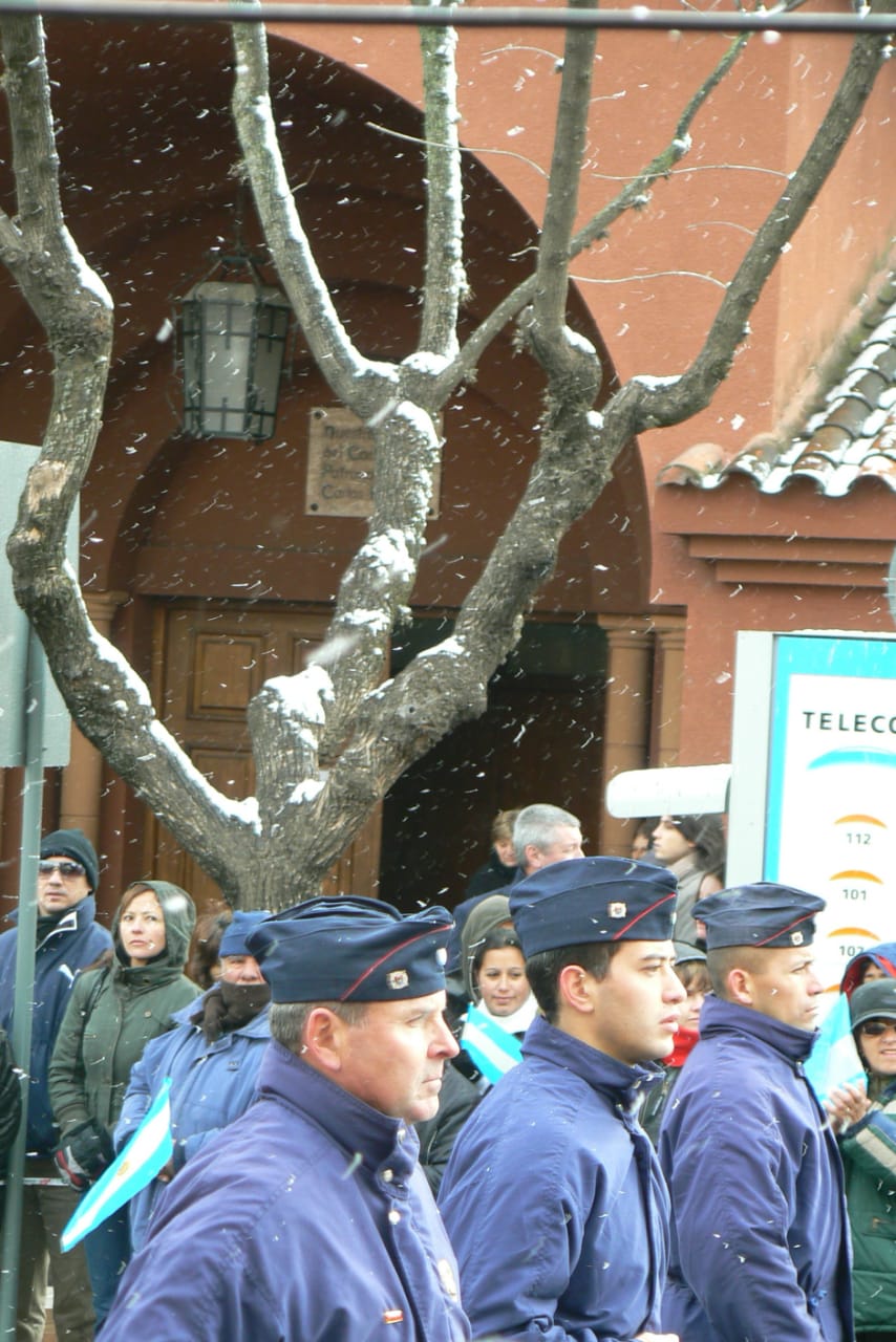 En momentos en que se realizaba el desfile cívico militar, la nieve no dejaba de caer brindando un espectáculo inolvidable.