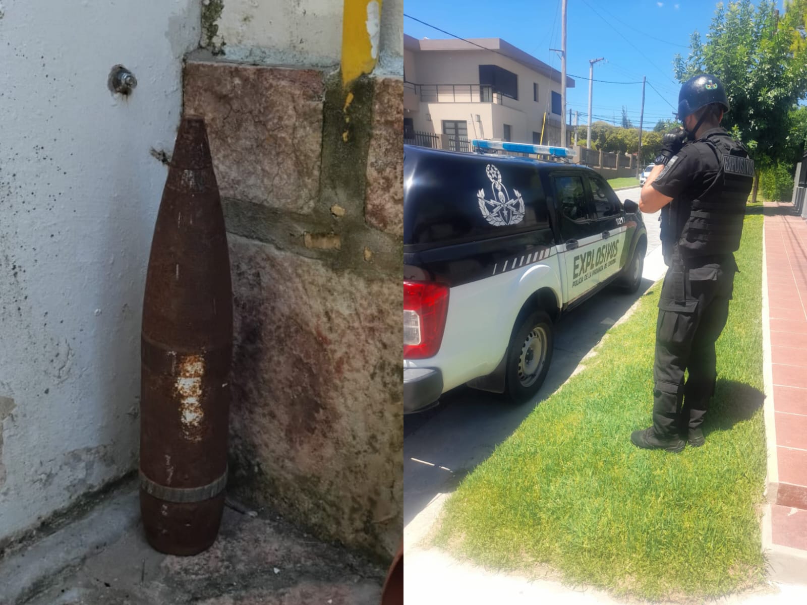 El hecho ocurrió en una casa ubicada sobre calle Quisquizacate al 100, del barrio Costa Azul Norte, donde el dueño advirtió la presencia de un elemento metálico sospechoso entre la tierra y dio aviso a las autoridades. Ante la situación, se activó el protocolo correspondiente y se convocó a personal especializado.