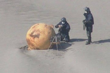 Efectivos de la policía local restringieron el acceso a la playa de Enshuhama, de la ciudad de Hamamatsu, ubicada en la prefectura de Shizuoka, y tomaron fotografías de la esfera, que fueron analizadas por especialistas.