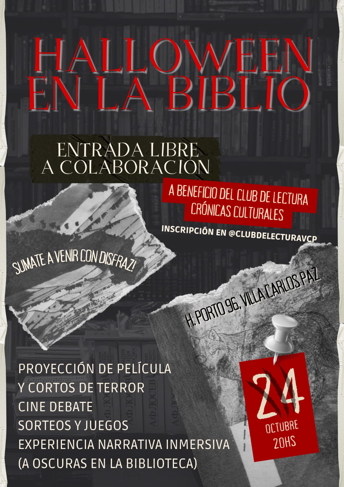 Este viernes 24 de octubre a las 20 horas, la Biblioteca Popular José H. Porto (José H. Porto 96, Villa Carlos Paz) se convertirá en escenario de una noche especial: “Halloween en la Biblio”, una propuesta del Club de Lectura “Crónicas Culturales” que combina cine, literatura, juegos y una experiencia narrativa inmersiva, todo con la atmósfera del terror gótico.