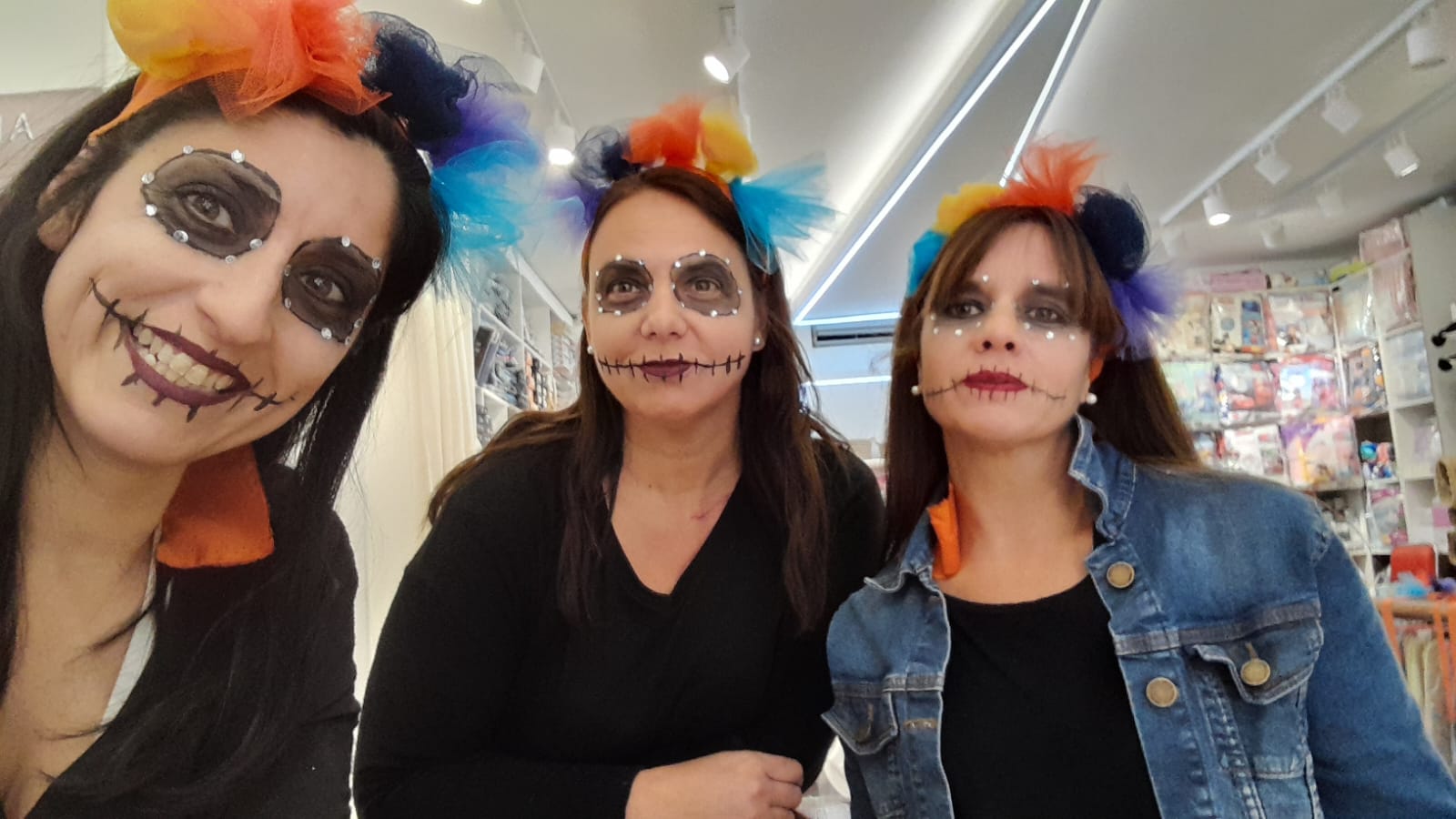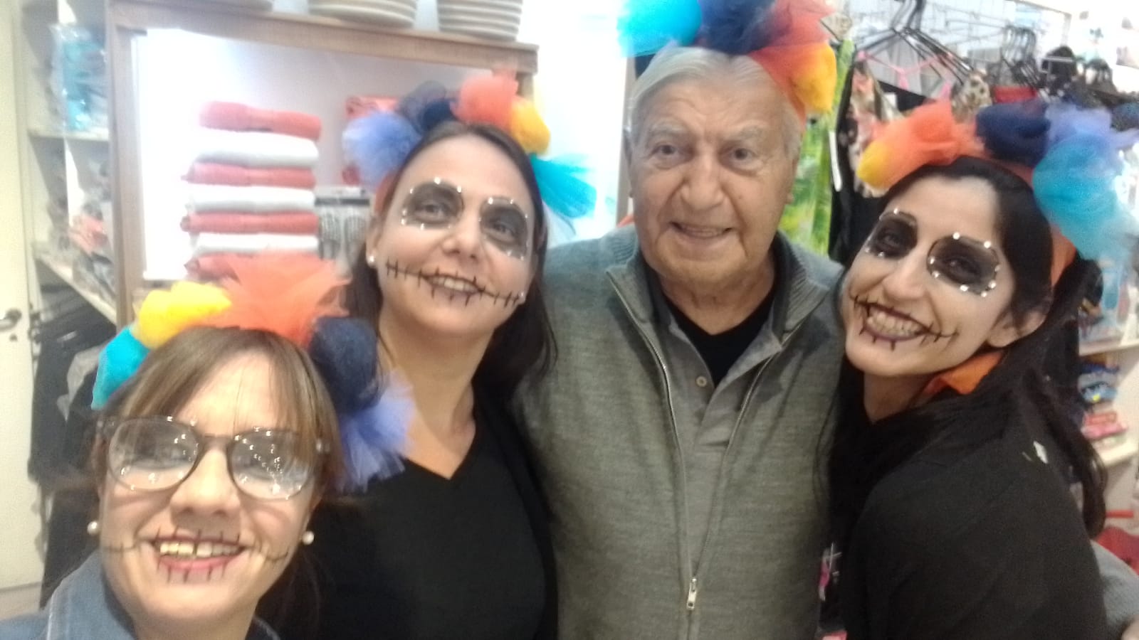 En algunos comercios, los empleados también se sumaron a la propuesta y se produjeron para la ocasión, como por ejemplo las chicas de «Arco Iris, la Tienda», comercio tradicional de la ciudad de la familia Metrebián.