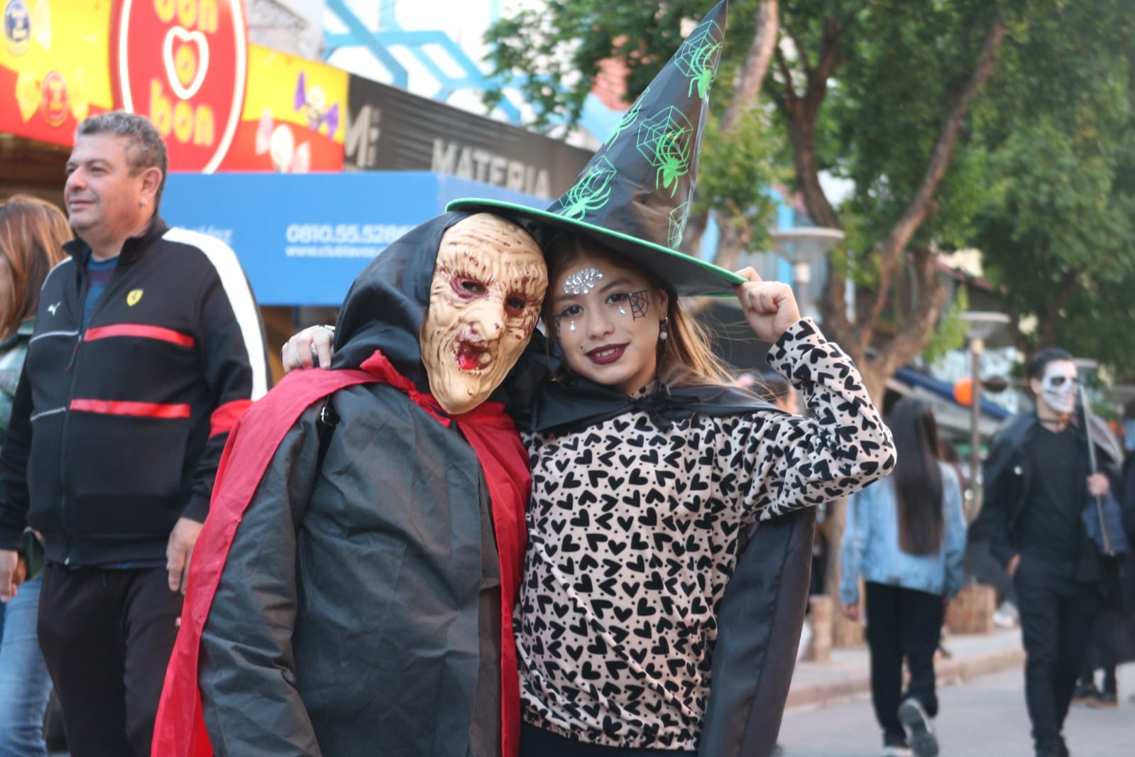Casi todos los negocios del centro se sumaron a la fiesta y regalaron más caramelos y dulces de todo tipo a los chicos que cada año mejoran sus disfraces. Un punto sobresaliente para el Kiosco El Molino uno de los que más se repleta de peques que quieren su obsequio a toda costa y a todo susto.