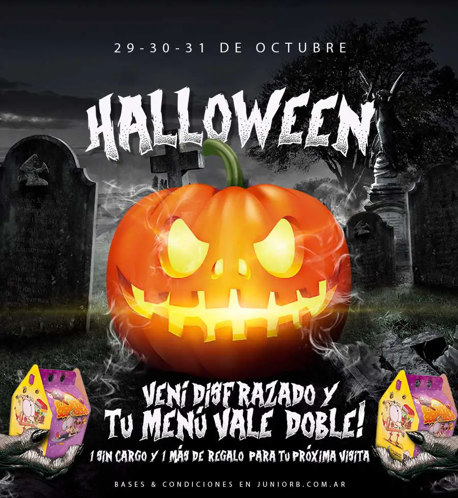 El domingo 29, lunes 30 y martes 31 de octubre serán los días de festejos por Halloween en los locales de Junior B. No sólo se premiará a los niños en el local, sino también a las familias que participen de los sorteos que se realizan en su Facebook.