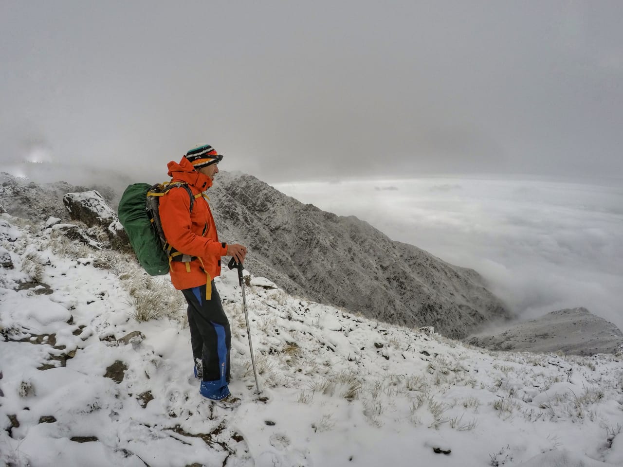 Recién a las 10 de la mañana, después de desayunar por segunda vez y prepararse, comenzaron el descenso del cerro. “Esperamos un poco para bajar para que mejorara un poco el clima, estaba muy cerrado arriba. Empezamos a bajar muy despacito, yo iba adelante marcando la huella hasta salir de la parte más crítica donde hay mucha piedra y estaba todo congelado” contó el hombre y destacó: “en partes hacíamos culipatín para poder descender, pero siempre con todos los cuidados del caso”.