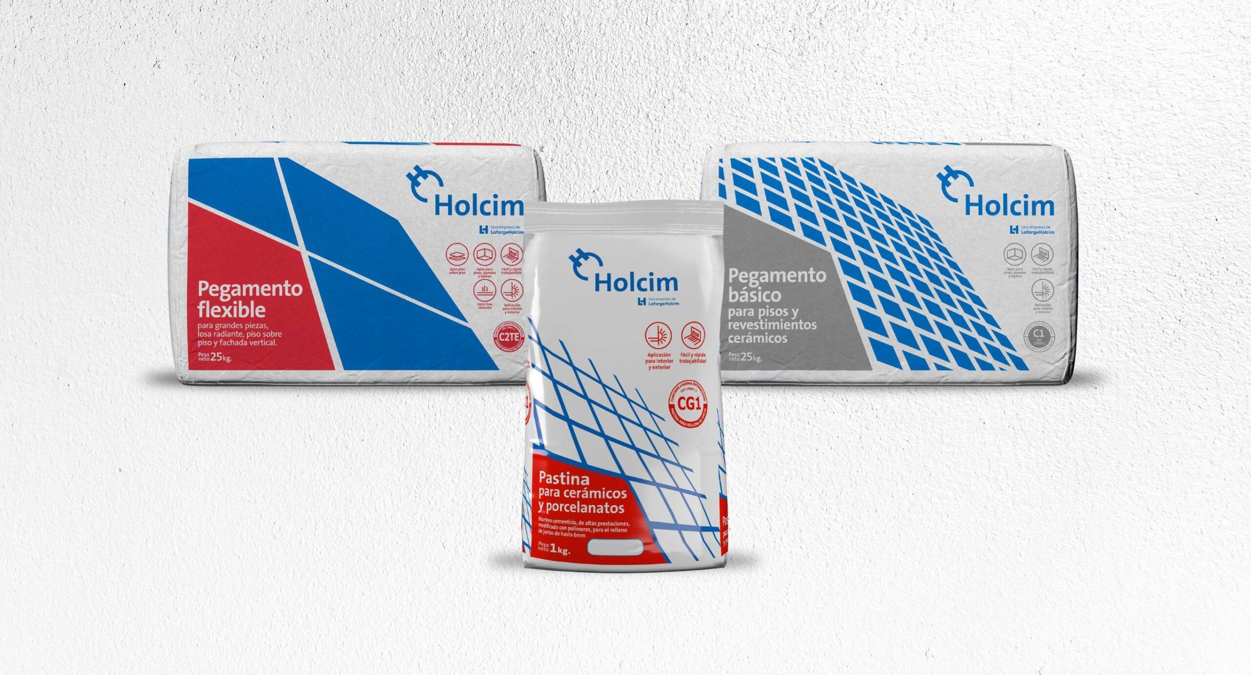 Holcim Argentina, líder en cemento, hormigón elaborado, agregados pétreos y servicios para la construcción, lanza al mercado 2 nuevos pegamentos y una pastina para cerámicos y porcelanatos, ideales para utilizar sobre cualquier tipo de piso, pared y techo, tanto para interiores como para exteriores.