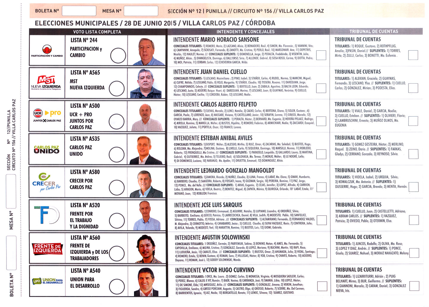 En la tarde de este miércoles 5 de junio y acorde al cronograma que fijó la Junta Electoral Municipal, se sorteará el orden de aparición en la Boleta Única de Sufragio que se utilizará el 30 de junio en las elecciones municipales.